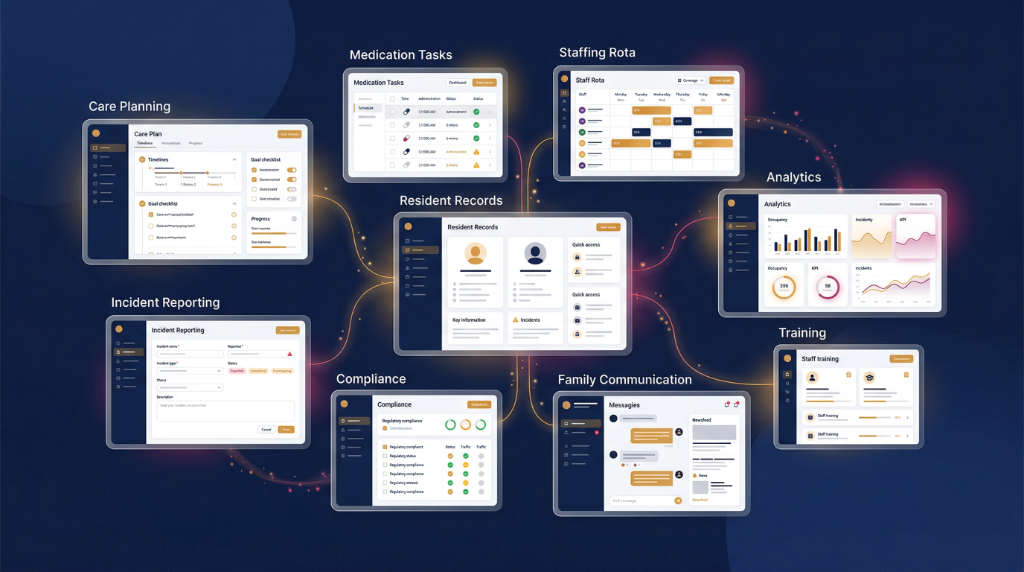 15 purpose-trained AI agents. eMAR. Care planning. Compliance monitoring. Scheduling. Family portal. Mobile-first. All in one platform designed from the ground up for adult social care.